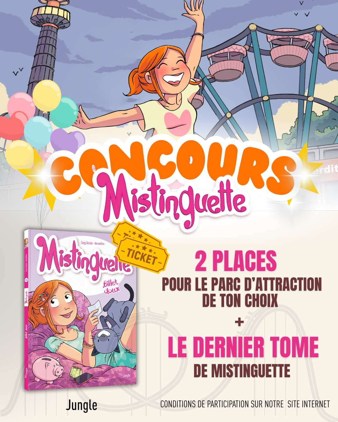 À l’occasion de la parution du nouveau tome, nous organisons un concours spécial afin de remporter 2 places dans le parc d’attraction de votre choix + le tome 16 de Mistinguette. Pour participer, rendez-vous sur nos pages Facebook et Instagram.